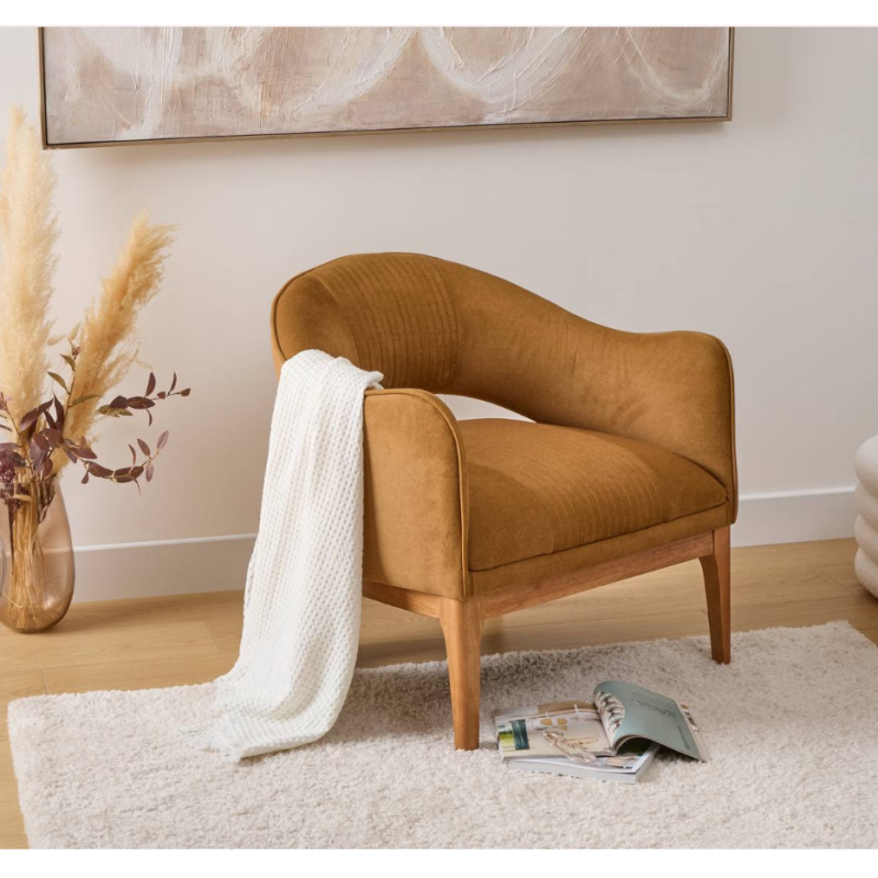 Fauteuil camel pied bois hévéa
