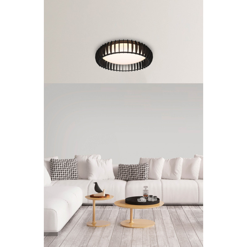 Plafonnier contour lamelles de bois noir 4.400lm GM CCT/DIM avec télécommande