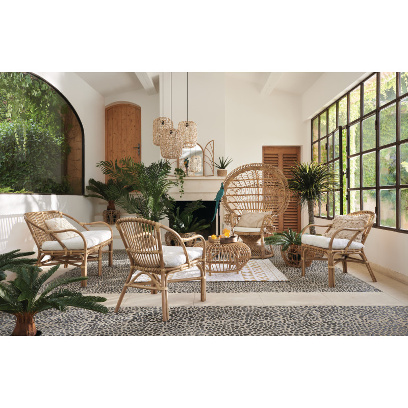 Le cannage de la suspension créera des motifs graphiques sur votre plafond une fois la lumière allumée. Ce luminaire sera du plus bel effet dans un décor au style ethnique chic.