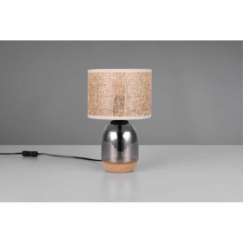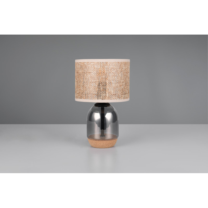 Lampe verre fumé liège abat-jour paille tressé