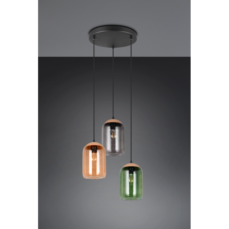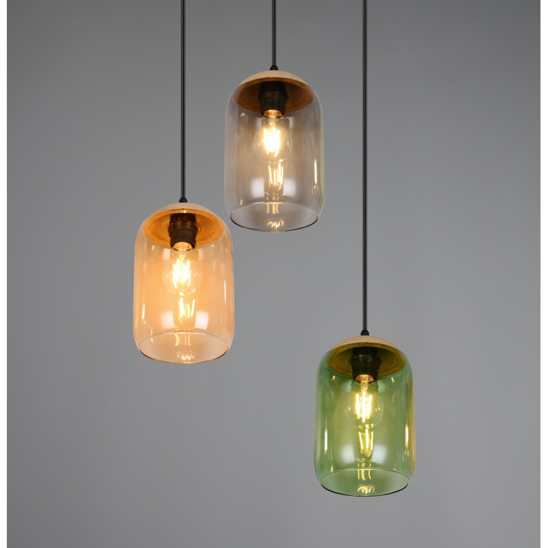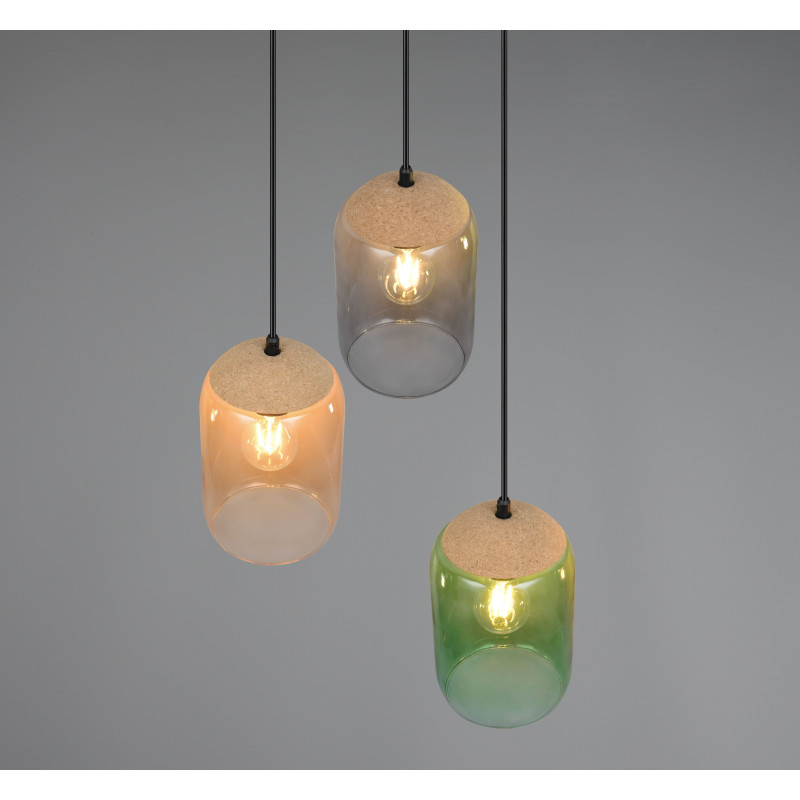 Un jeu fascinant de lumière et de durabilité - notre lampe suspendue à trois lumières est la pièce maîtresse parfaite. La combinaison harmonieuse de verre recyclé et de liège donne vie aux couleurs de la vie. Grâce à son aspect esthétique, elle s'intègre parfaitement dans votre salon et votre salle à manger et crée une ambiance chaleureuse avec des tons chauds. Sa palette de couleurs vertes, ambrées et fumées crée un sentiment de connexion avec la nature. L'utilisation d'un mélange de matériaux tels que le liège, le verre et le métal renforce cette impression de nature et confère à la pièce un équilibre harmonieux entre le naturel et le design moderne.