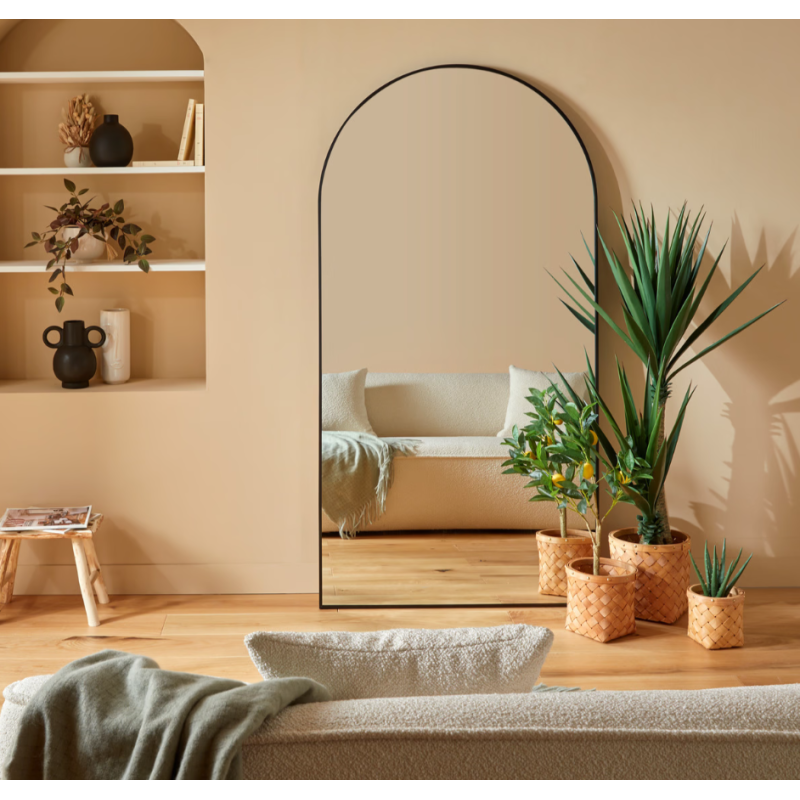 Le miroir arche offre une grande hauteur qui vous permettra d'habiller un mur et de voir votre reflet en pied. Son cadre très fin lui confère un design sobre et épuré. Un miroir grand format à la fois pratique et élégant !