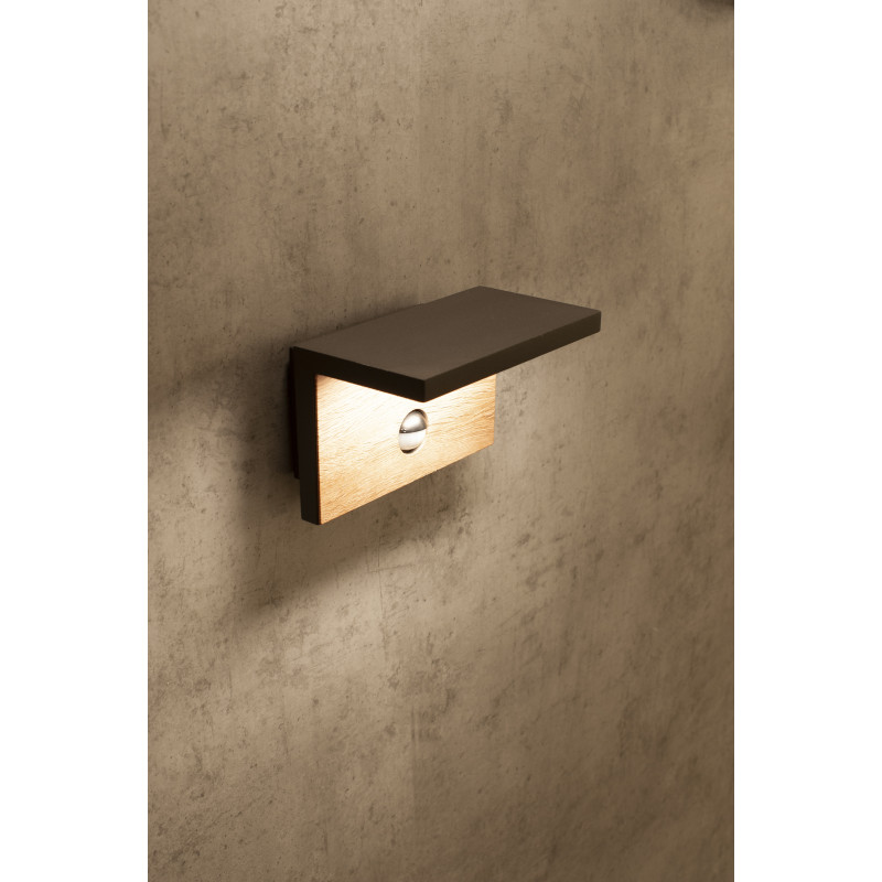 Applique anthracite bois 15w 1100lm détecteur