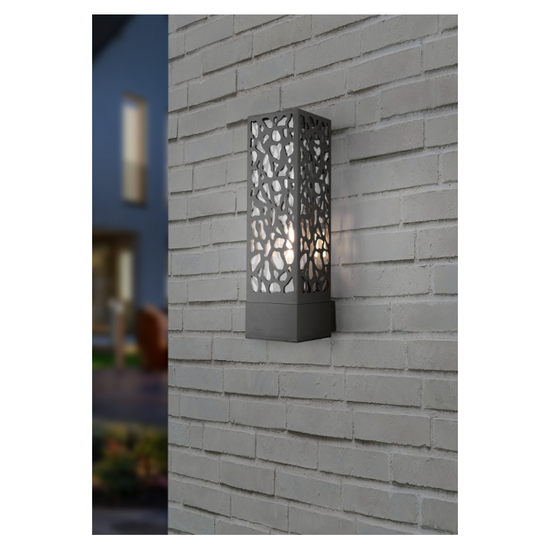 Que ce soit pendant les longues soirées d'été ou pendant la saison sombre, l'applique d'extérieur moderne est, grâce au motif spécial de l'abat-jour, à la fois allumée et éteinte, un accroche-regard décoratif.