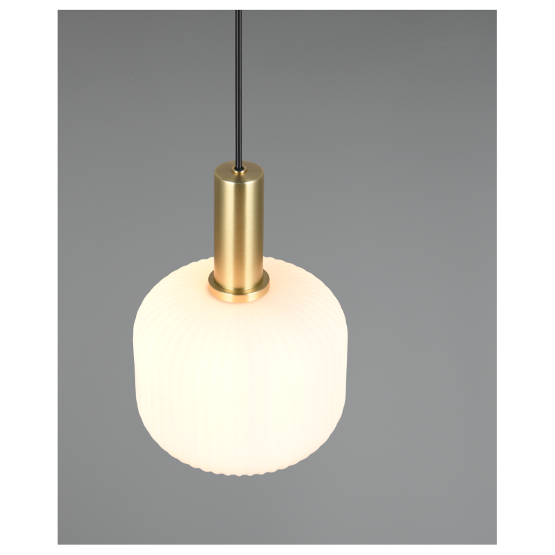 La combinaison glamour du doré mat et du verre blanc confère à ce luminaire à une seule lampe une allure élégante et discrète.